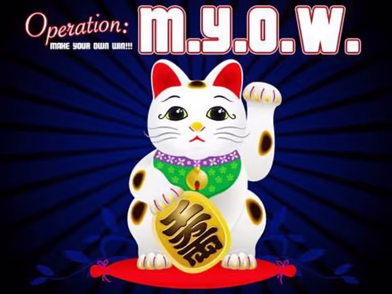 Operation M.Y.O.W Slots is a traditional silver slot machine but with a cat-themed print, therefore the player will see fish bone detailing on the machine as well as symbols to enhance the game's theme. Not all the symbols you will come across have the same value, as some offer higher payouts than others but the different cats you will come across are BatCat, Catzilla, King Cat, Kung Fu Kitty and a Lucky Cat.